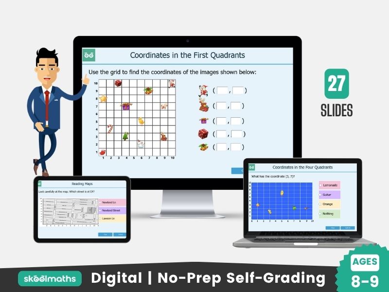 This is an interactive math lesson for learners in year 4 on coordinates in the first quadrants.